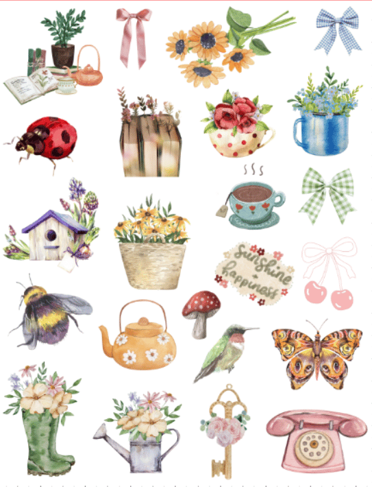 23 Handmade Beautiful Cottagecore Stickers, flowers, birds, bows, journal, planner, laptop, phone