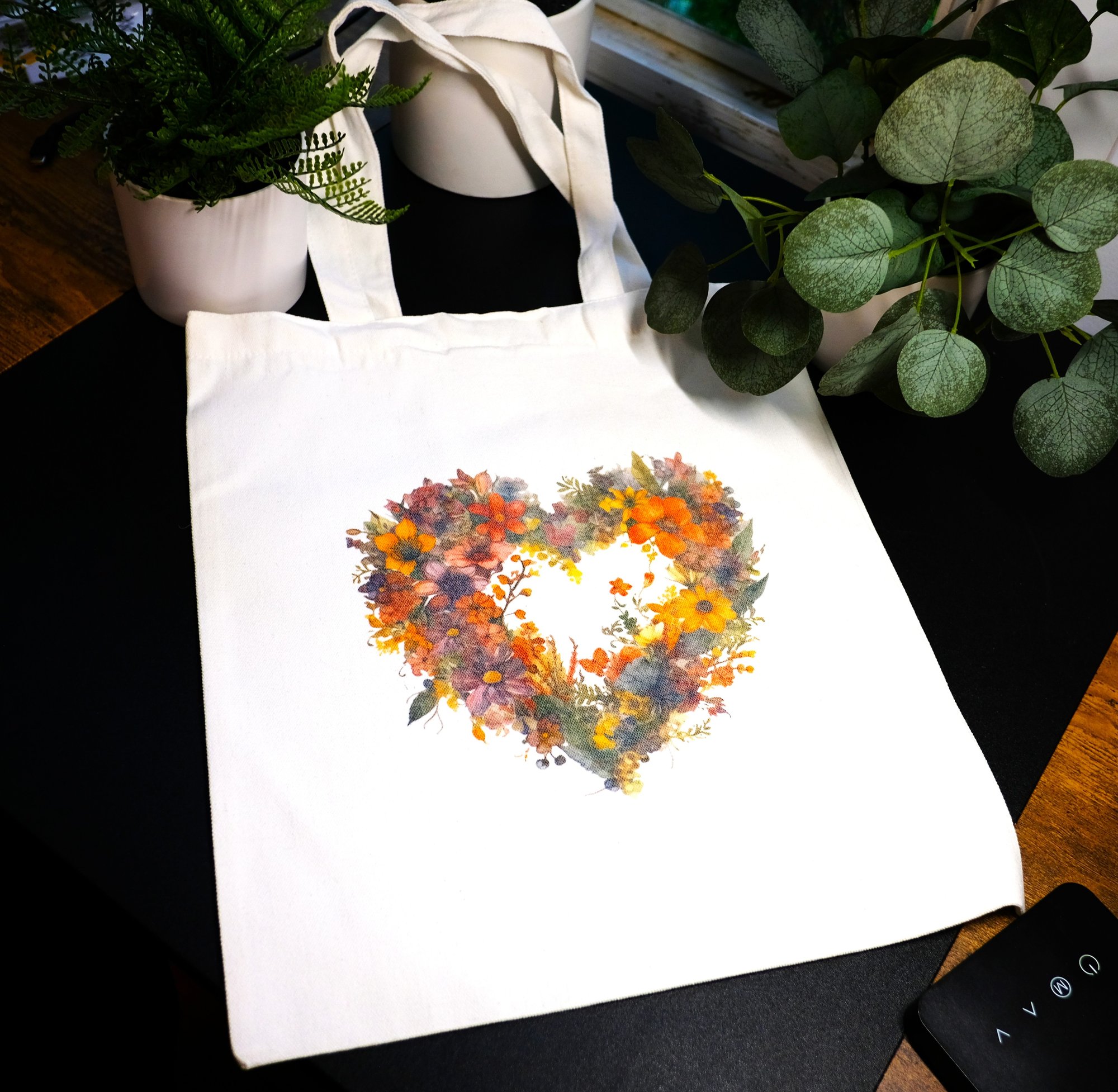 Beautiful Handmade Floral Heart Canvas Tote Bag, books, grocery, women, shopping, reusable, flower