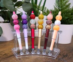 Beautiful, sparkly handmade gold beaded pen. It has a lot of sparkle. These are ball point pens with black ink. Twist the bottom of the pen to expose the ball point part of the pen. The pens are very trendy. They make writing in your journal, planner, notebooks, working and everyday use cheerful and fun. They are made with silicone, acrylic and glass beads.