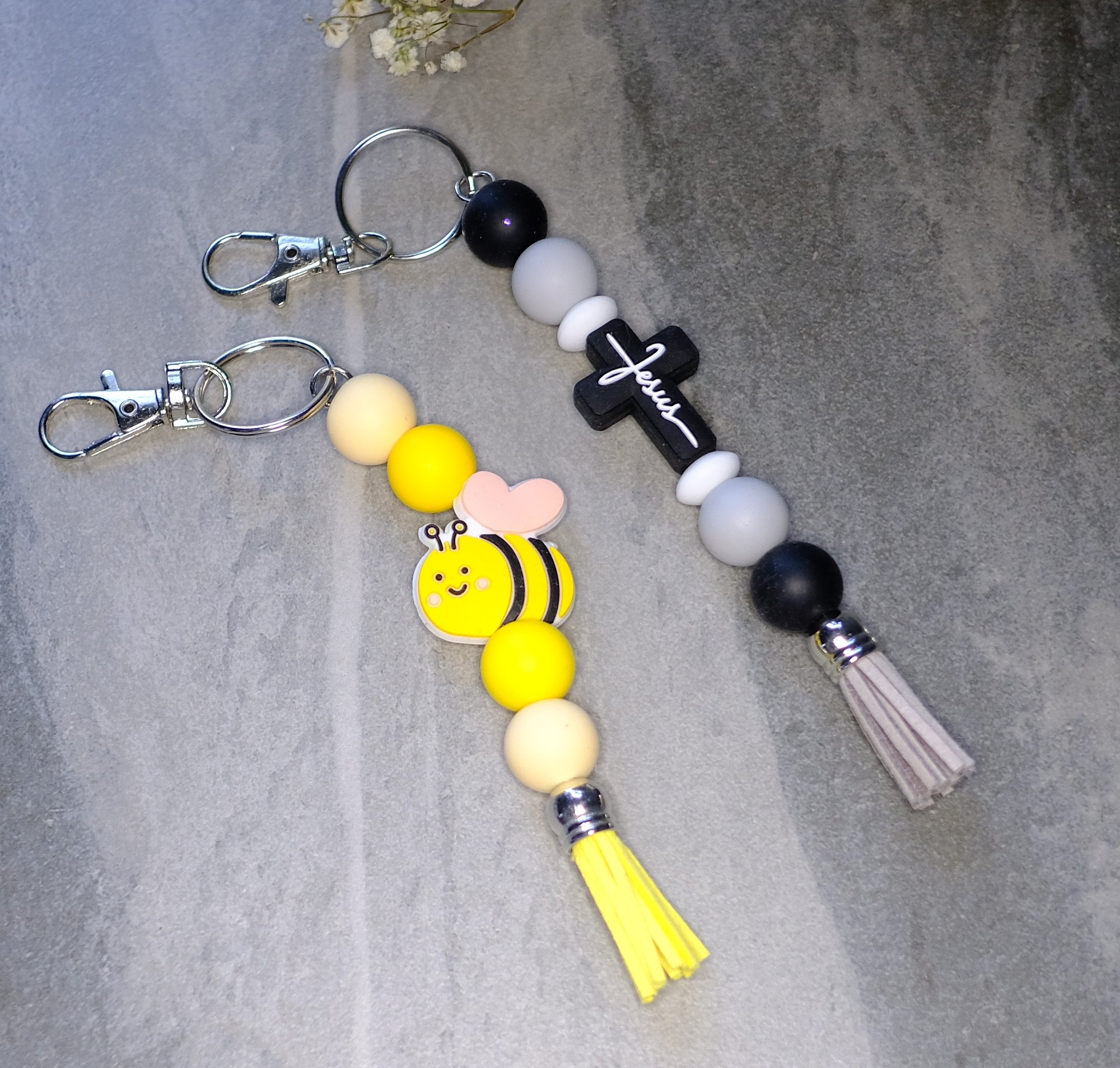 Fun Handmade Beaded Keychains, tassel, bee, cross, religious, key, keys, gift, bag charm, backpack