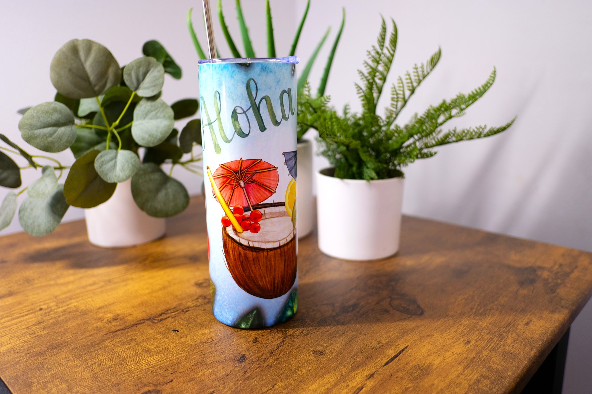 Handmade Aloha Tropical 20oz Stainless Steel Tumbler, drink, hot, cold, straw, cup, gift, Hawaii