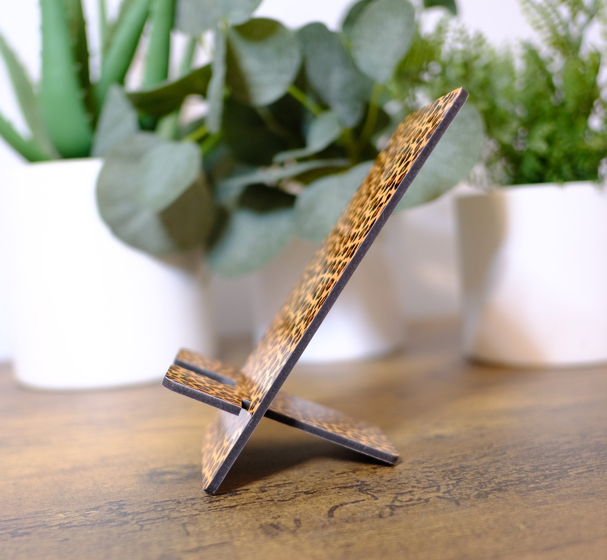 Vibrant handmade animal print cellphone stand/charging dock. The stand measures 3" x 5 1/2". This design is unique and eye catching. I used the sublimation process to apply the design which means it will not fade.