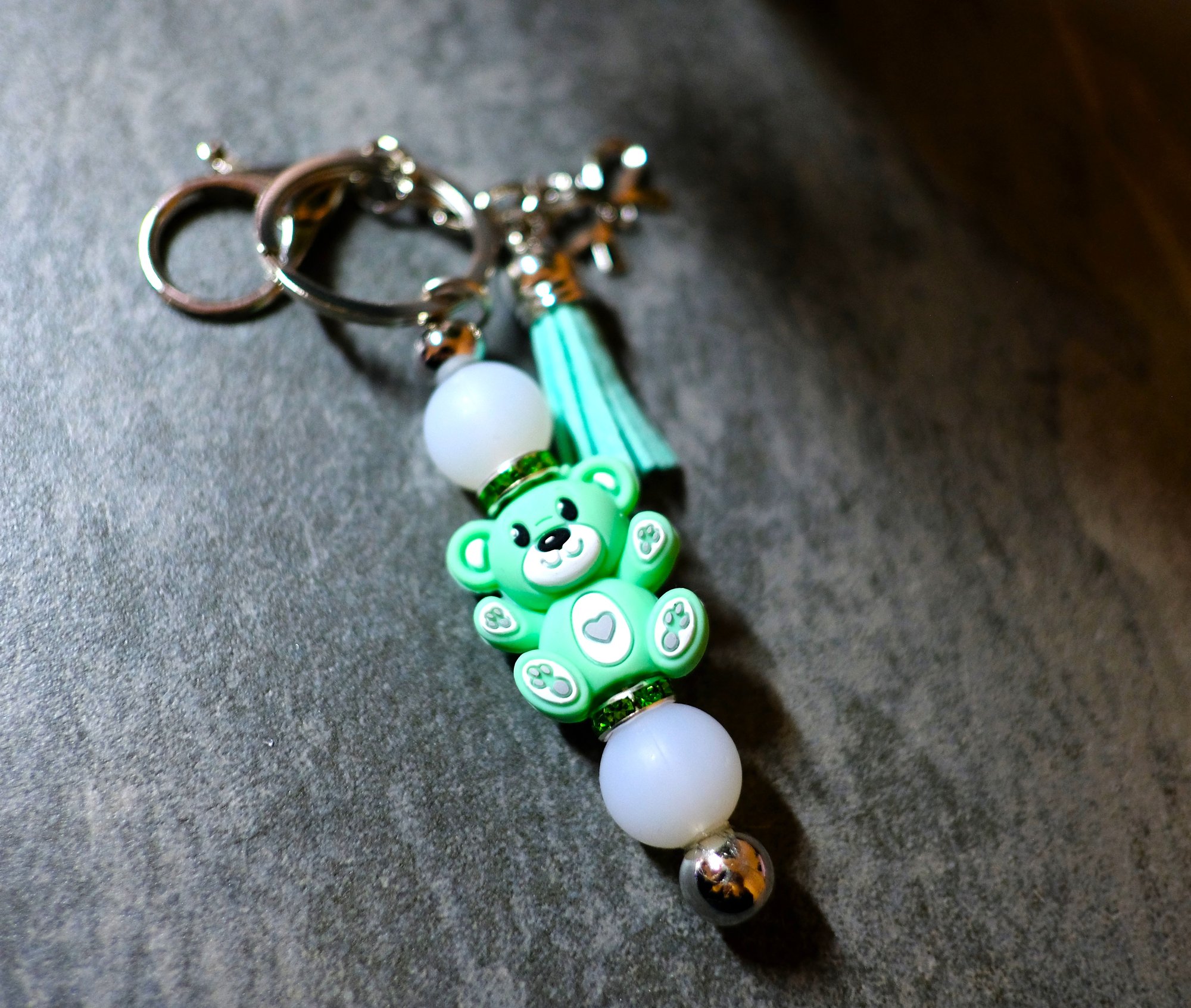 Handmade Beaded Keychains, bear, heart, tassel, charms, backpack, gift, bag charm, key, keys, clip