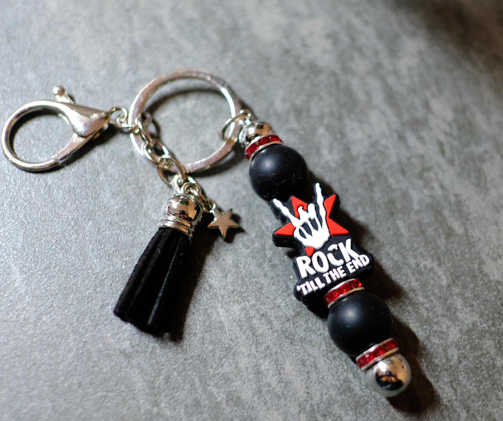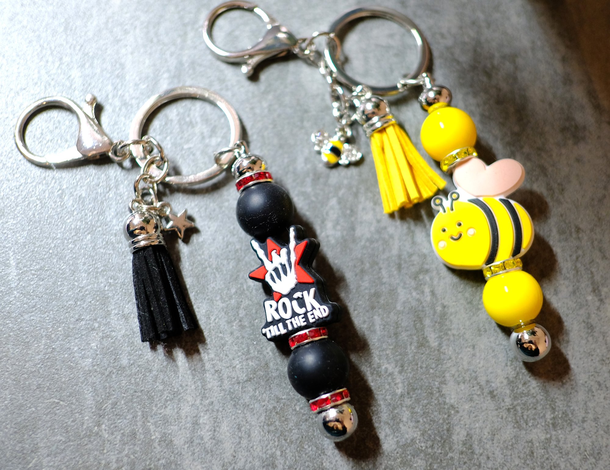 Fun and trendy handmade beaded keychains. Either a rock and roll fan or you like whimsical bumble bees, go ahead and show a bit of your personality.