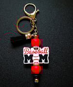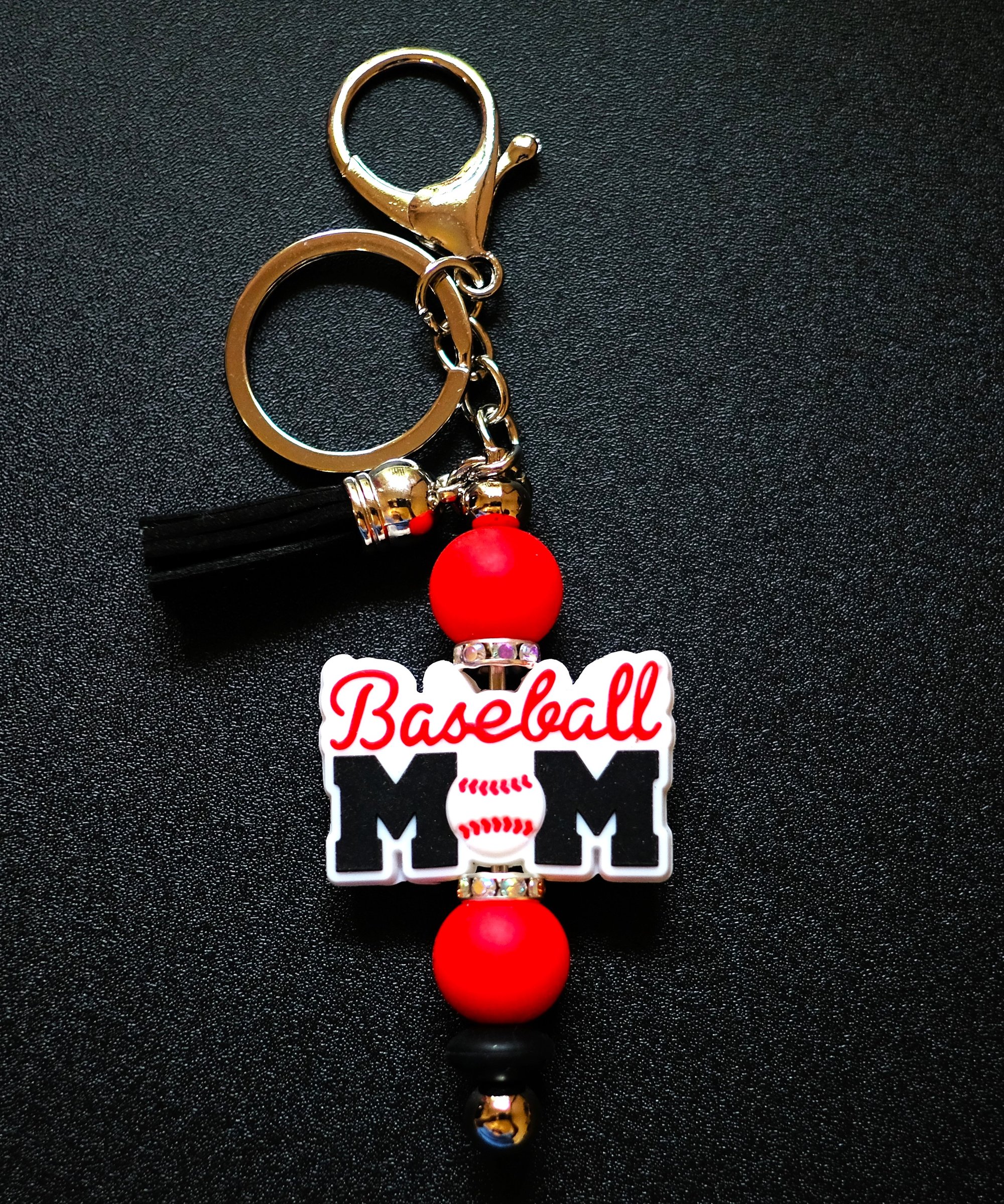 SOLD * Red silicone beads with a baseball mom silicone focal bead along with black tassel