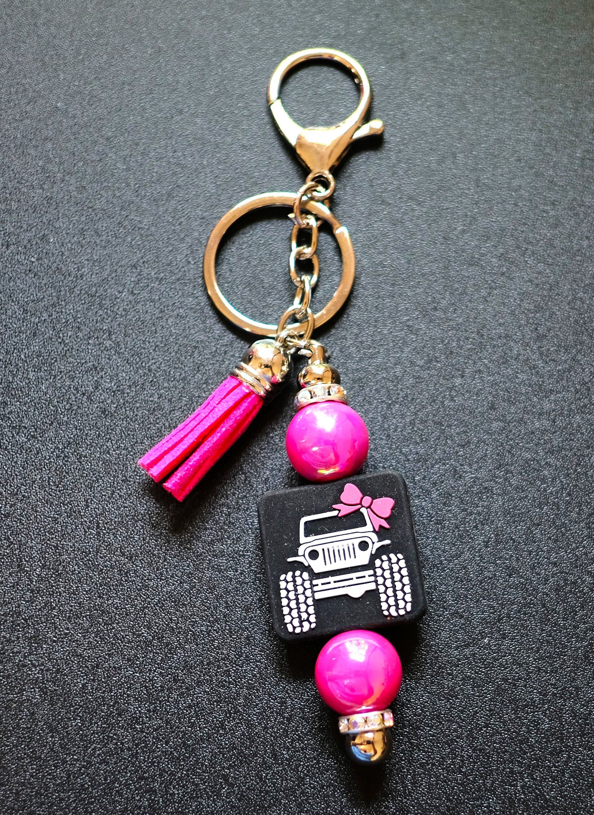 Handmade Beaded Keychains with Tassels, keys, key, driving, beads, tassel, jeep, clip, gift