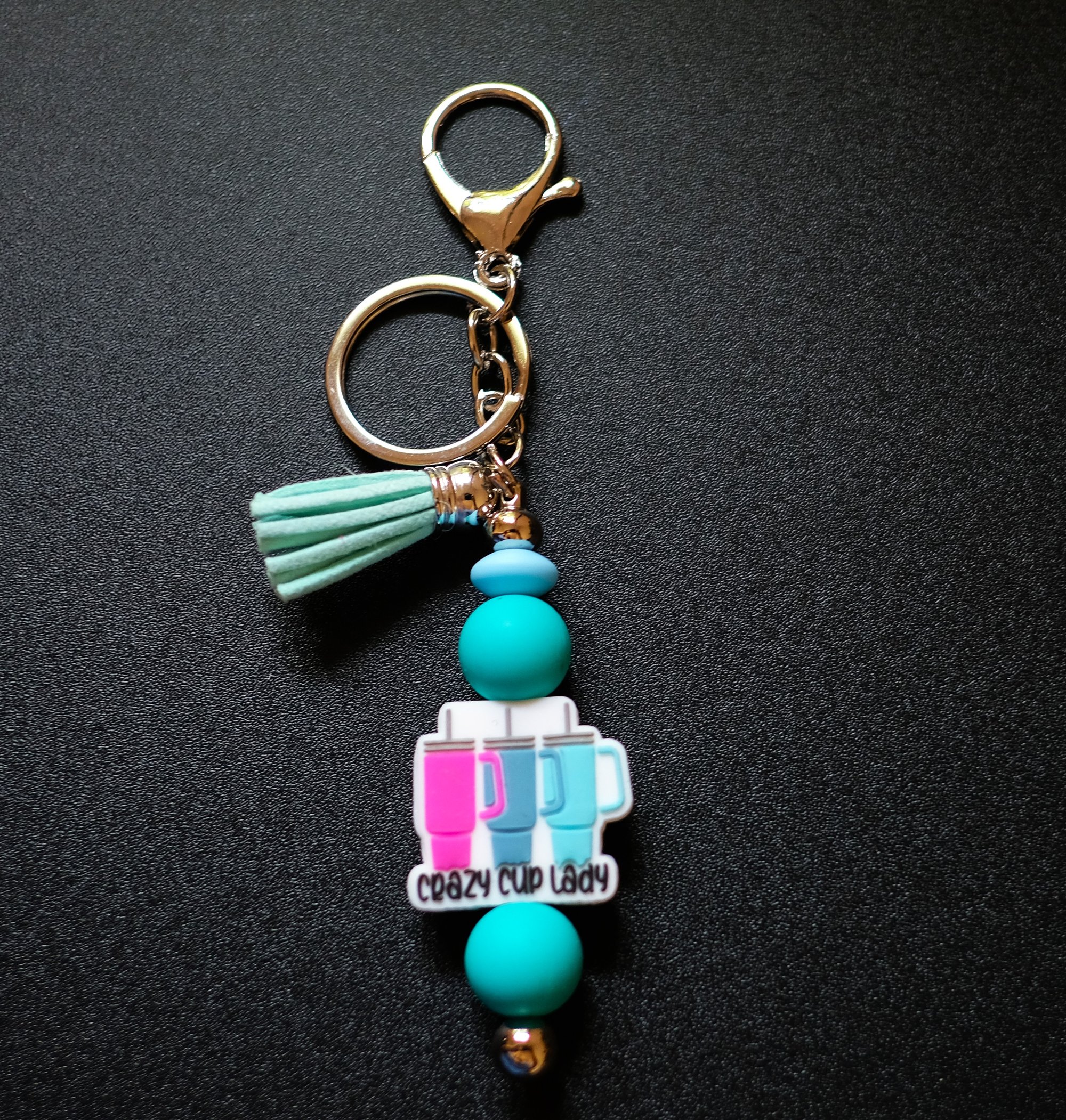 * Turquoise silicone beads with a crazy cup lady silicone focal bead along with a light turquoise tassel