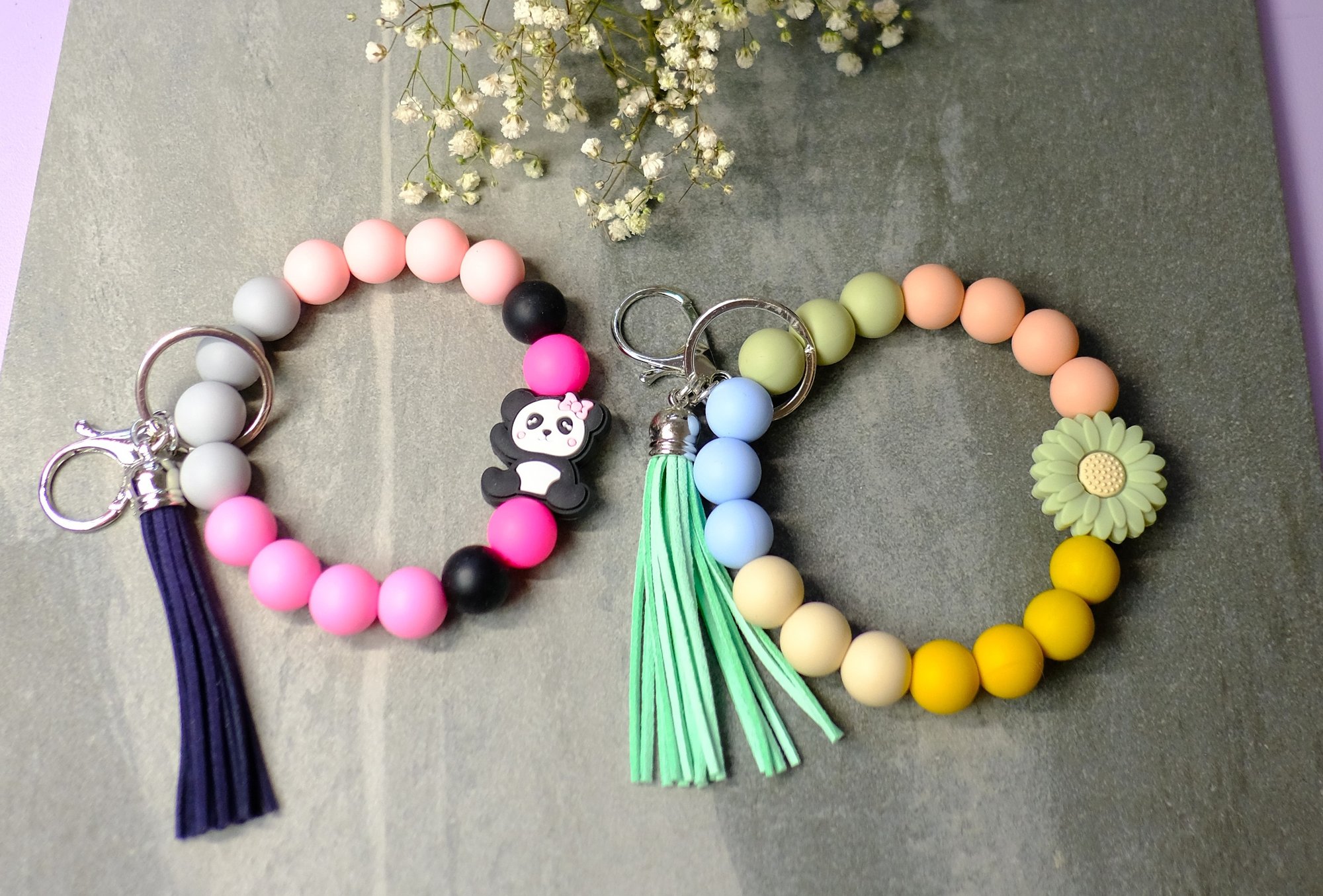 Handmade Beaded Wristlet Keychains, tassel, key ring, panda, flower, keys, gift, bag charm, backpack
