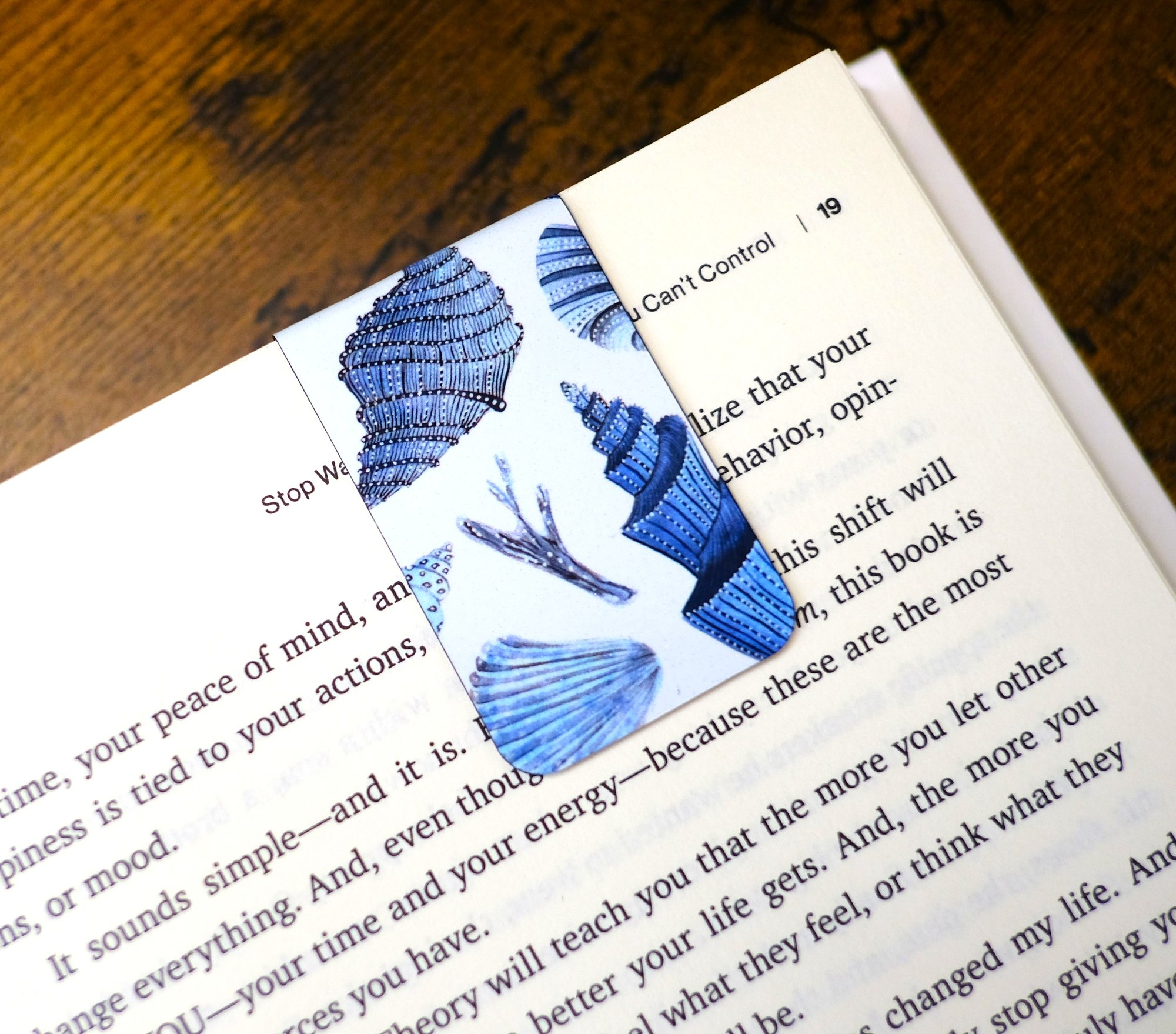 Handmade Blue Seashell Magnetic Bookmark, sea, ocean, beach, read, gift, journal, planner, book