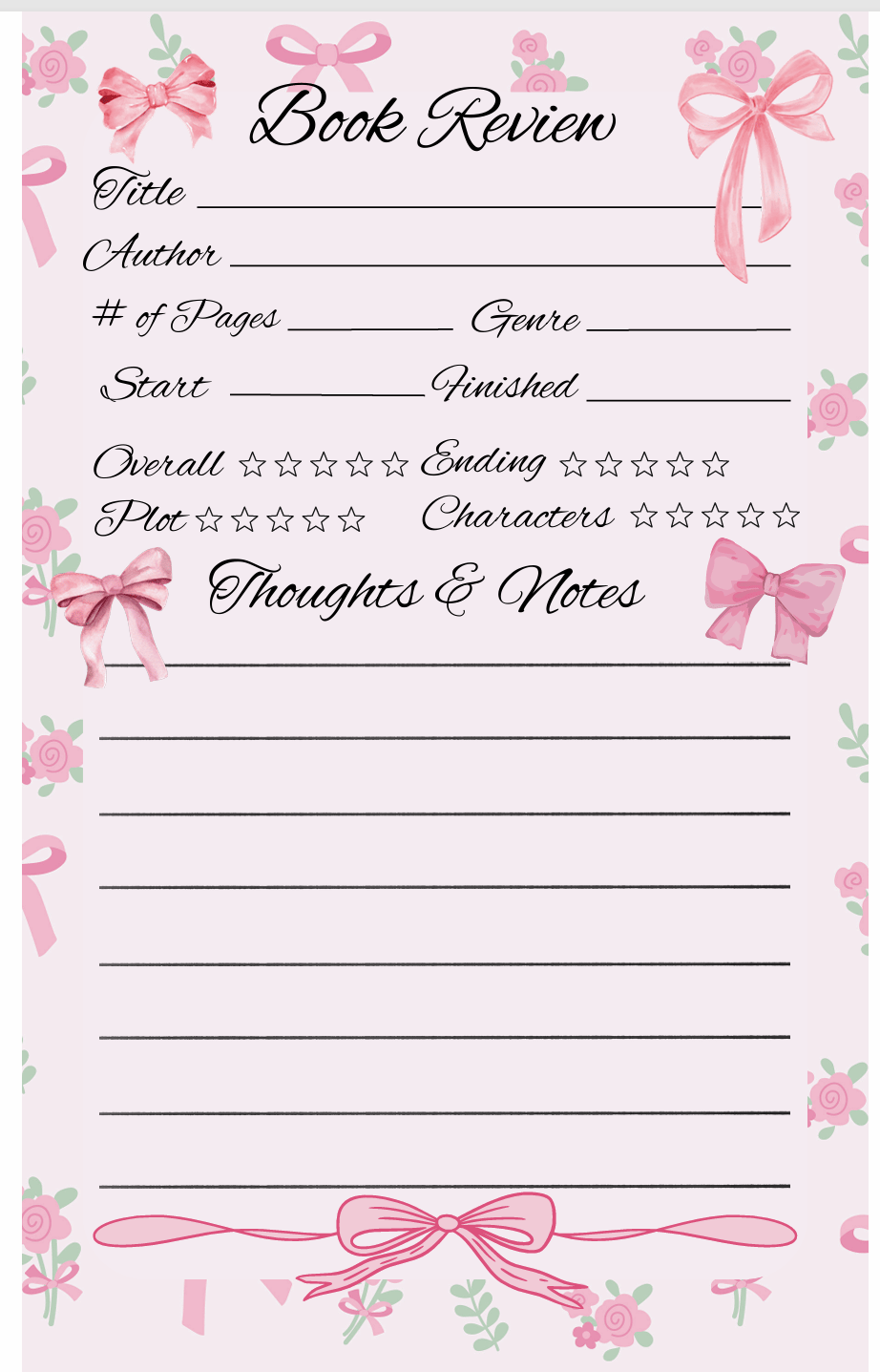 Handmade Book Review Notepad, club, gift, read, bows, pink, coquette, reading, bookmark, notes, pad