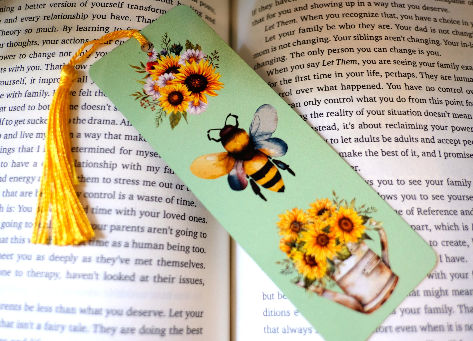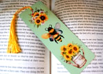 Handmade Bumblebee and Sunflowers Metal Bookmark with Tassel, Book, reading