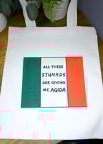 Canvas tote bag with Italian flag and "All These Stunads are Giving Me Agida". If you're Italian like me, then you know.
