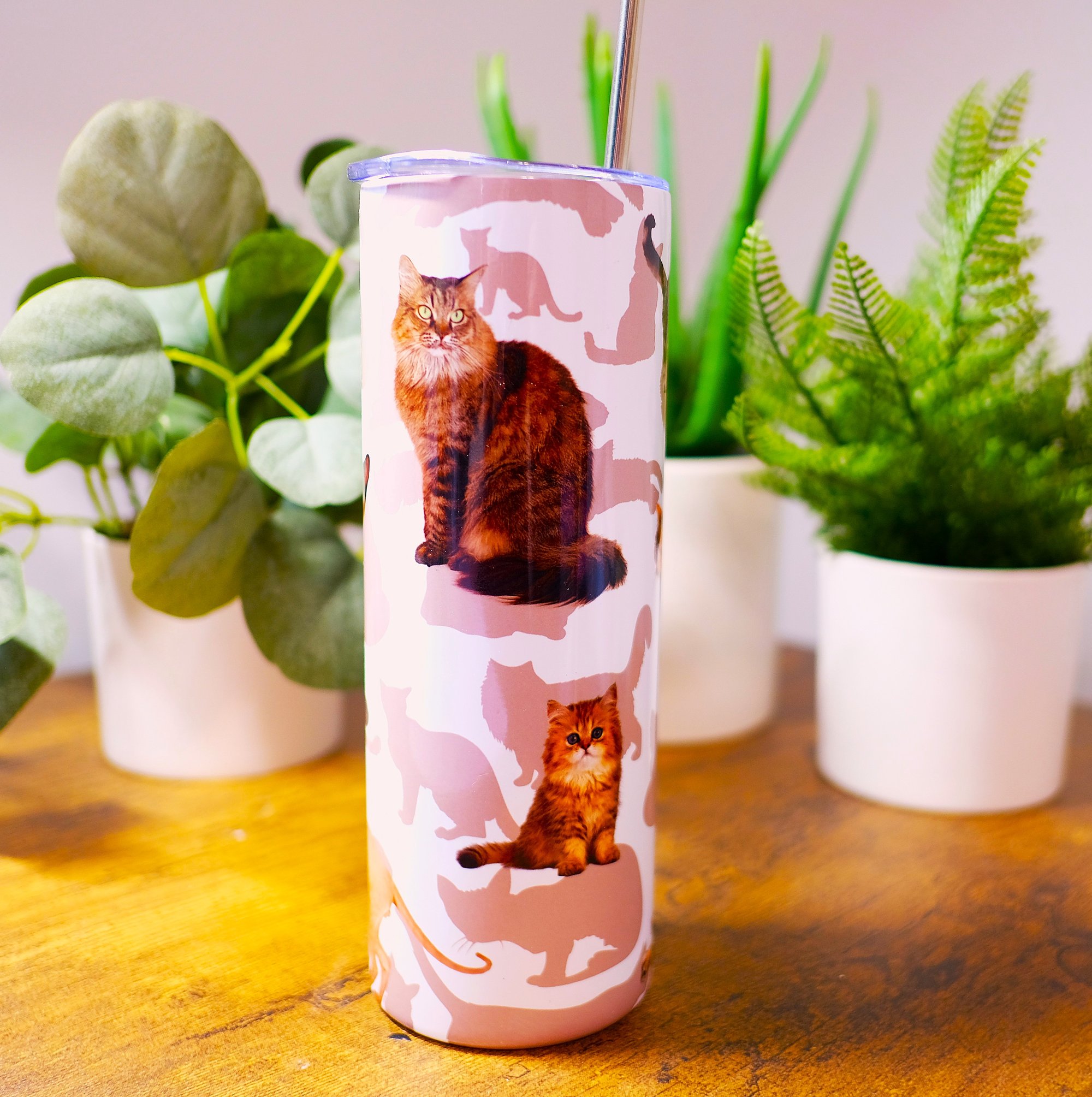 Handmade Cats 20oz Stainless Steel Tumbler, hot, cold, drink, straw, cup, water, gift,