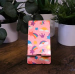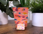 Fun handmade cellphone stand/charging dock with vibrant rainbows and unicorns. It's a very bright and fun design. I think any girl with cellphone would love this. The stand measures 3" x 5 1/2". This design is unique and eye catching. I used the sublimation process to apply the design which means it will not fade.