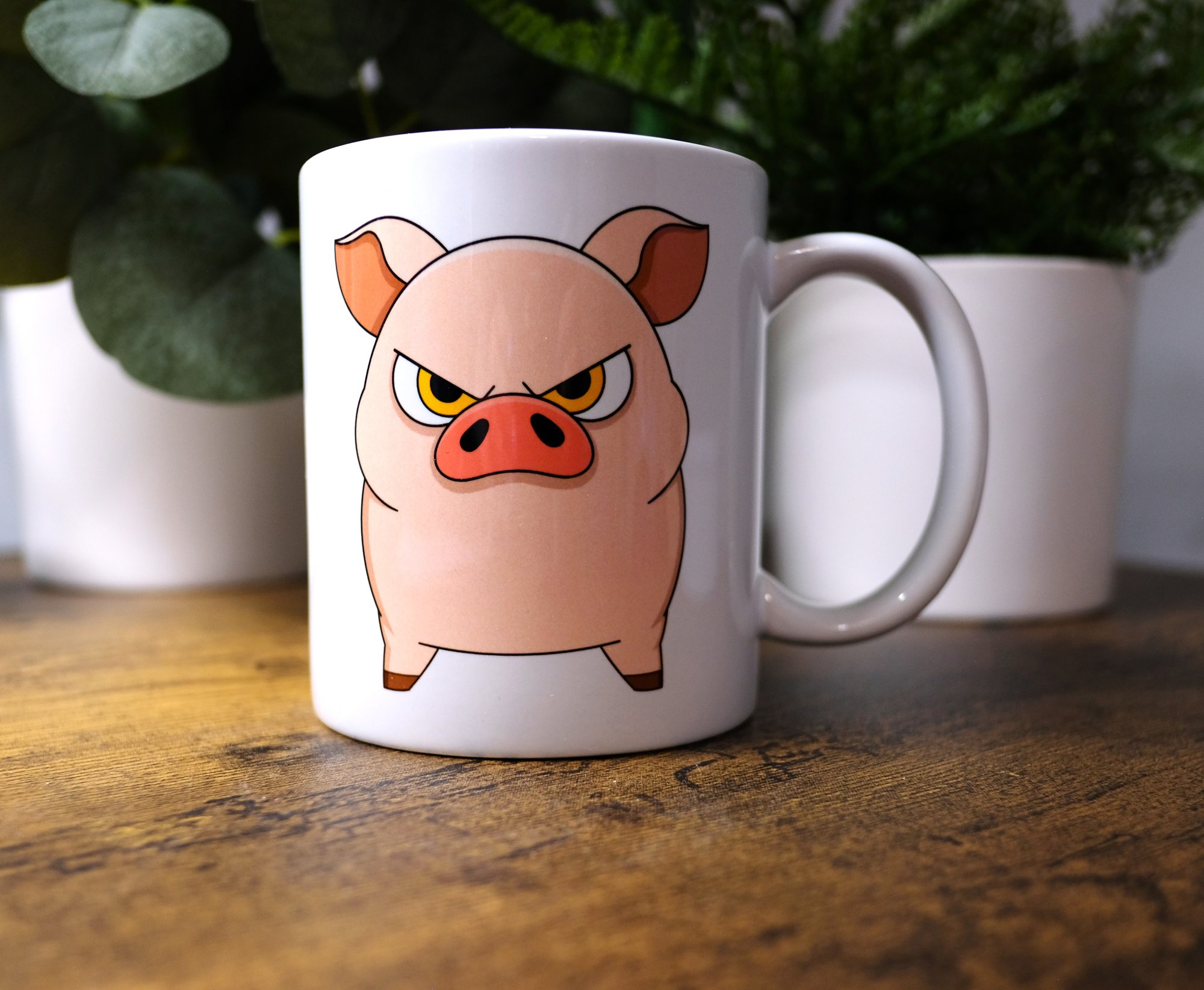 Very funny handmade I can't have soft friends because I talk a little aggressively mug featuring a funny angry pig.