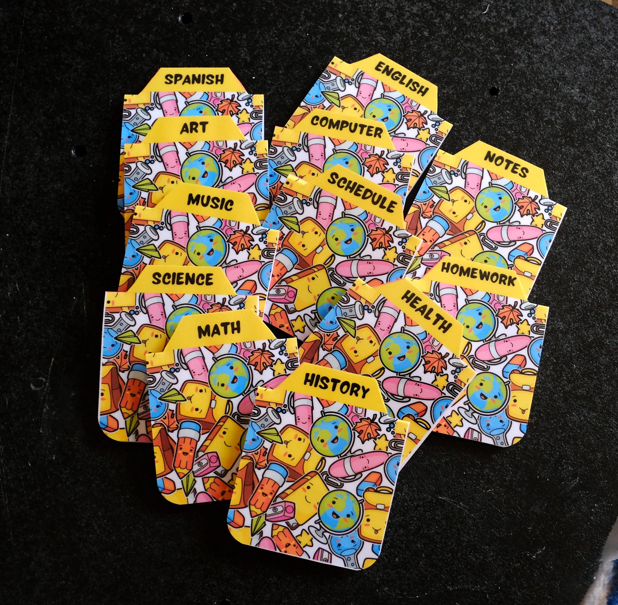 Handmade Magnetic School Subject Tabs, dividers, subject, notebook, gift
