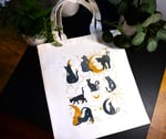 Handmade Mystical Cats Canvas Tote Bag, cat, reusable, shopping, cat, moon, astrology, gift