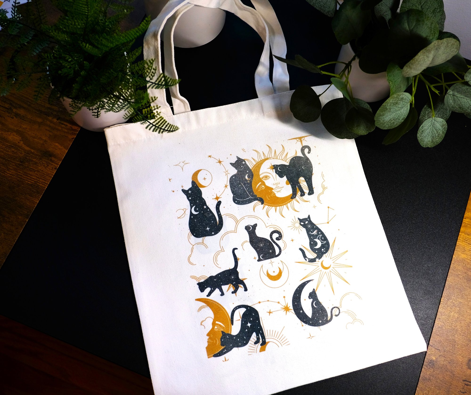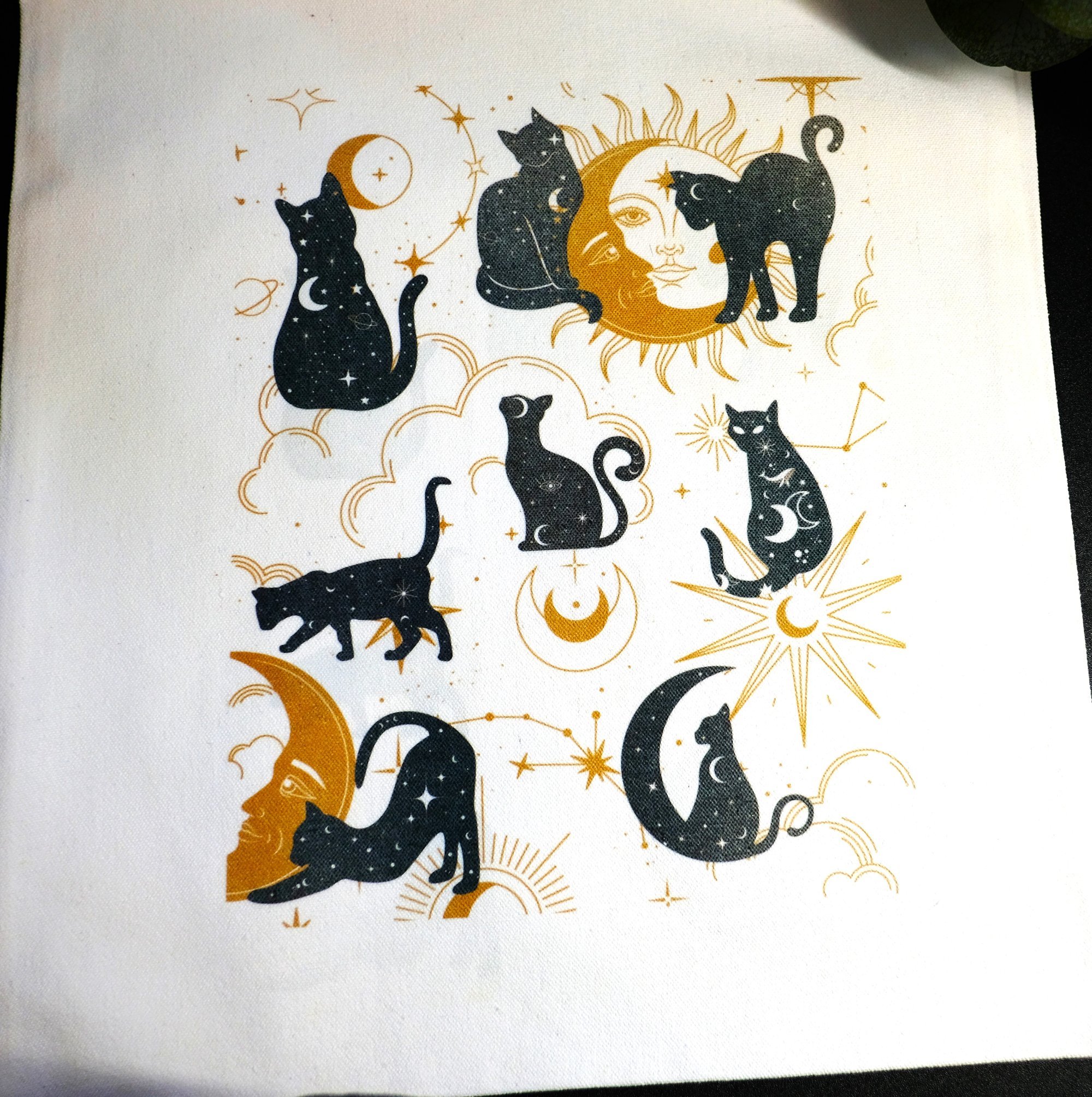 Very cool handmade mystical cats canvas tote bag. Anyone that is a fan of black cats, astrology or mystical-core, will love this tote bag. Keep for yourself or fill with goodies for a special gift.