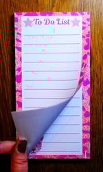 This pink animal print To Do List notepad features 50 lined pages. The beautiful design will illuminate your desk or workspace giving an uplifting boost to your day. The pad measures approximately 4.5" x 8.5". (some sizes may vary slightly because of the design) All my stationery notepads are made with high quality paper and a sturdy backing for stable writing. Smooth writing with no bleed-through.