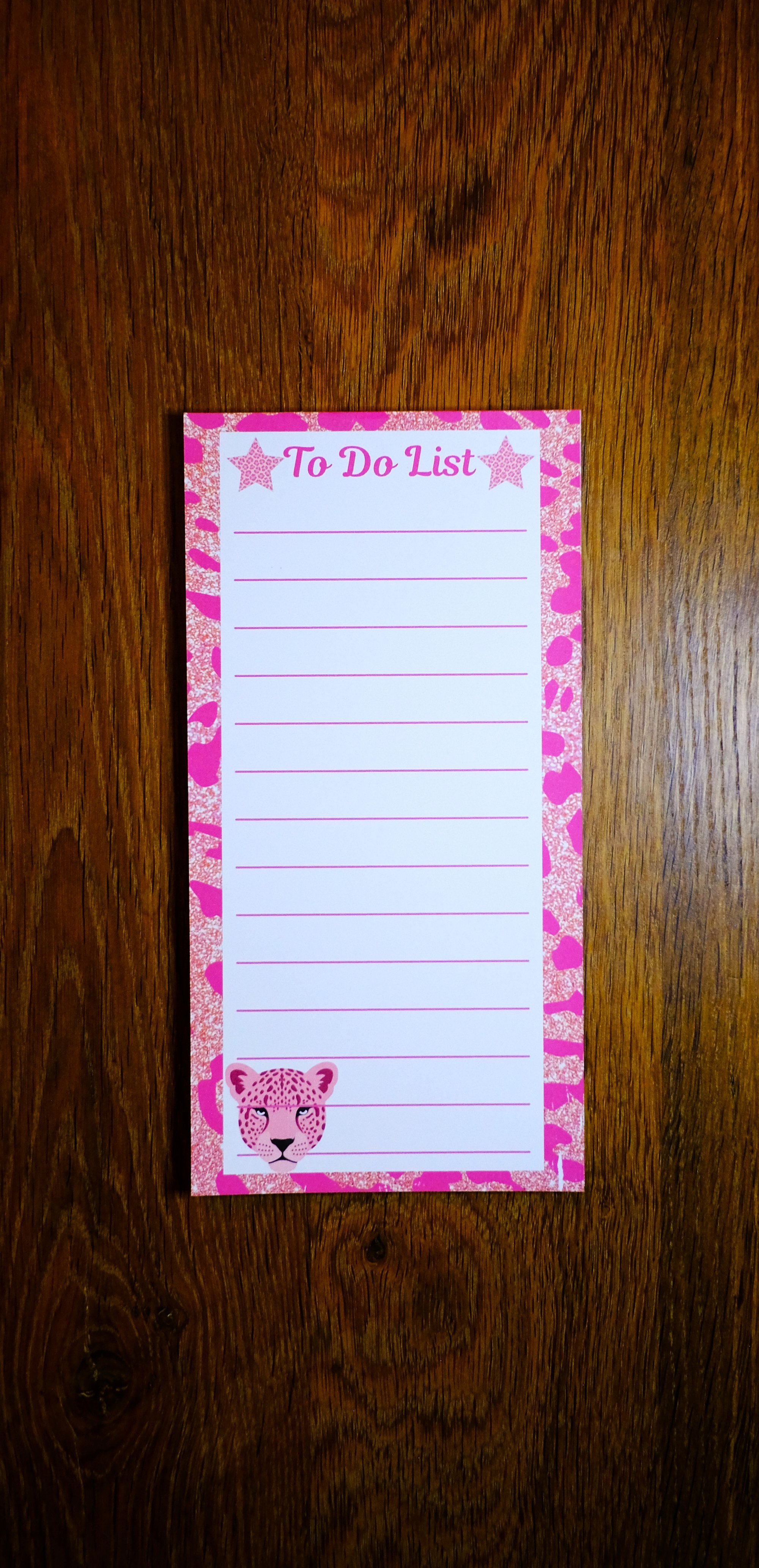Handmade Pink Animal Print To Do List Notepad notes, lined, leopard, gift, pad, memo, cheetah, note