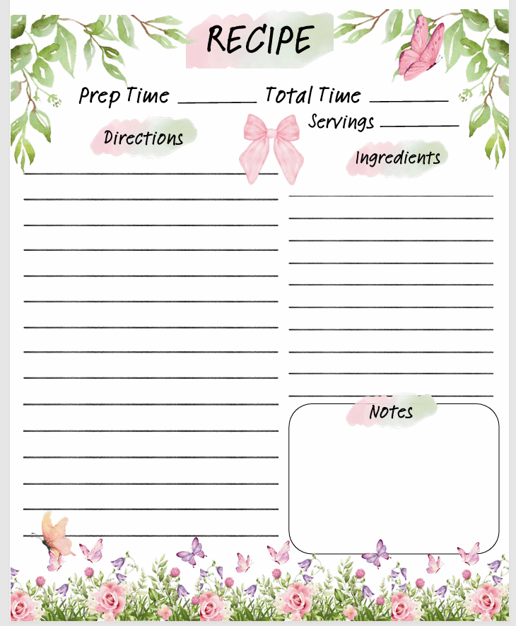 This recipe notepad features 25 pages with several sections: Prep Time, Total Time, Servings, Directions, Ingredients, and Notes. Beautiful colors will give an uplifting boost to your recipe pages. The pad measures approximately 8.5" x 11". (some sizes may vary slightly because of the design) All my stationery notepads are made with high quality paper and a sturdy backing for stable writing. Smooth writing with no bleed-through.