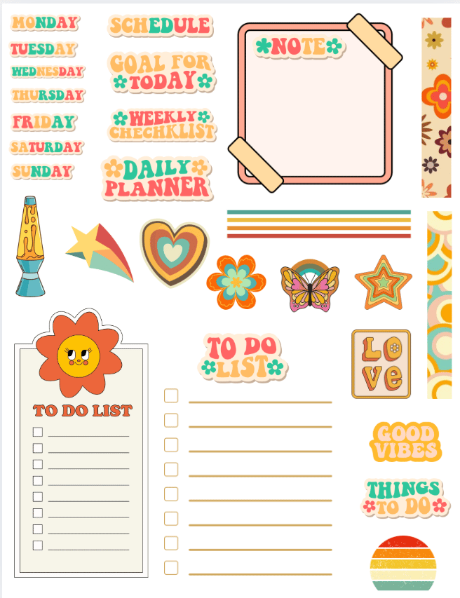 Handmade Retro Themed Planner Stickers, journal, Calendar, organize, 70s, week, note, to do, washi