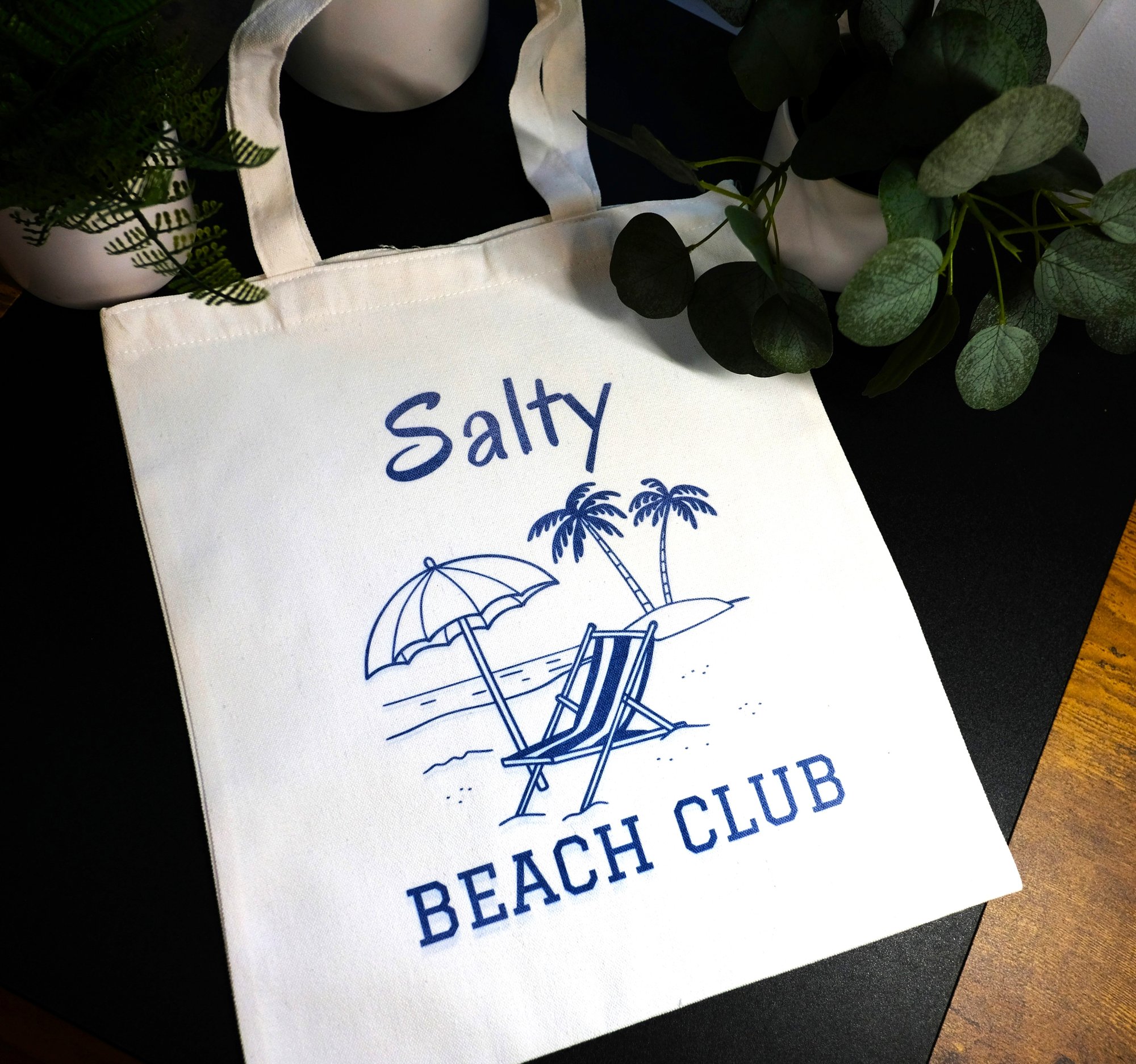 Handmade Salty Beach Club Canvas Tote Bag, books, beach, shopping, reusable, gift, vacation