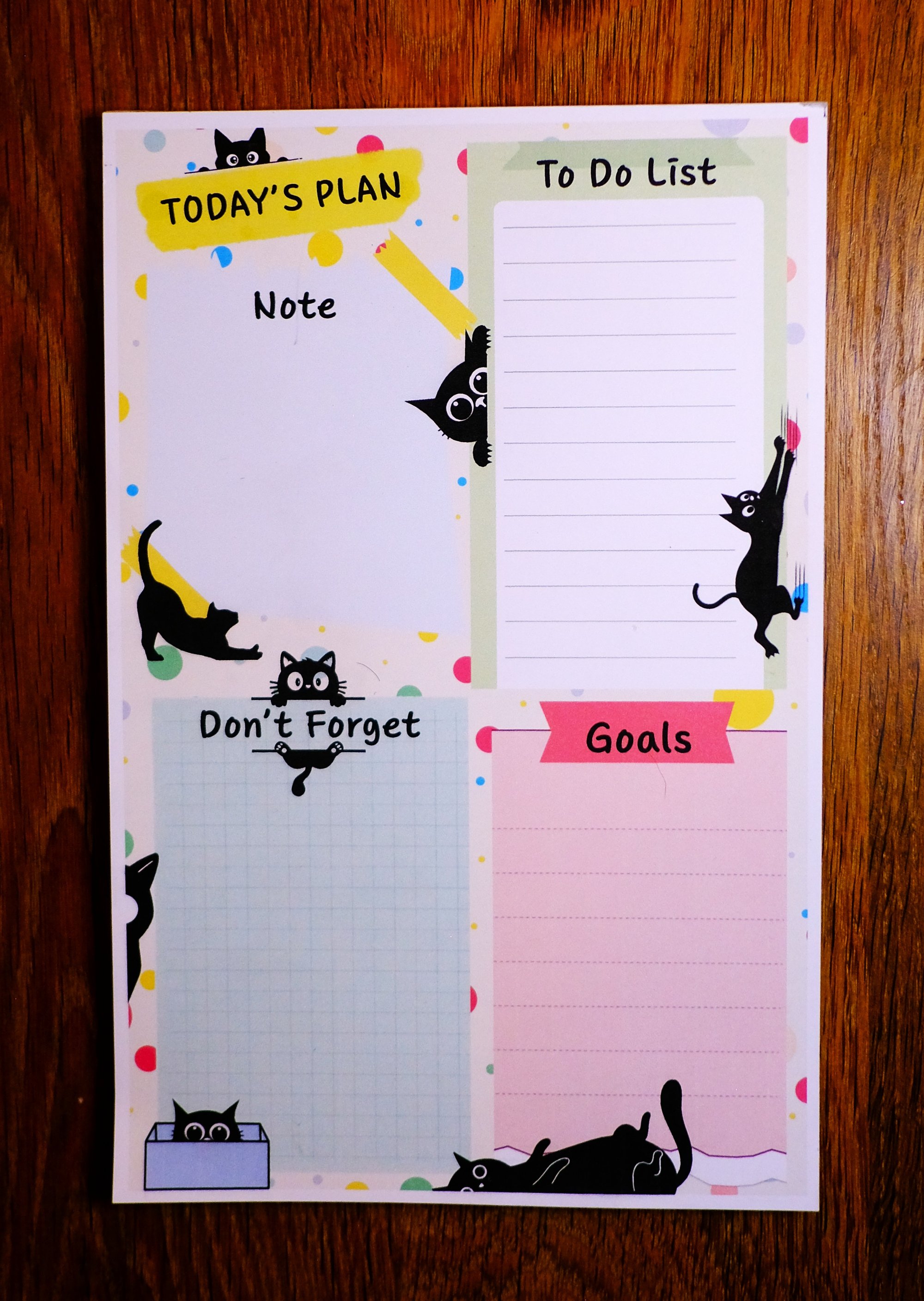 Handmade Today's Plan Black Cats Notepad, organize, pages, goals, list, gift, pad, colorful, planner