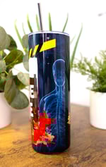 Double layered, vacuum insulated stainless steel. Push button lid ensures a leak proof seal. Perfect for on the go hot and cold drinks. They are easy to clean and reuse for years to come. Comes with straw and a straw cleaning brush. Tumbler stands 8 1/2" tall. The design is applied using the sublimation process. Which means the design will not fade. The sublimation process also makes the colorful design very vibrant. The design is self made and is a one-of-a-kind.