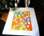 Trendy Handmade Canvas Tote Bag with Groovy Mushrooms, shopping, books, reusable, gift, groceries